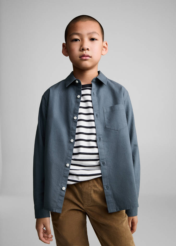 100% coton. Coupe regular. Coupe droite. Col chemise. Manches longues et poignets boutonnés. Poche plaquée. Fermeture à boutons à l'arrière