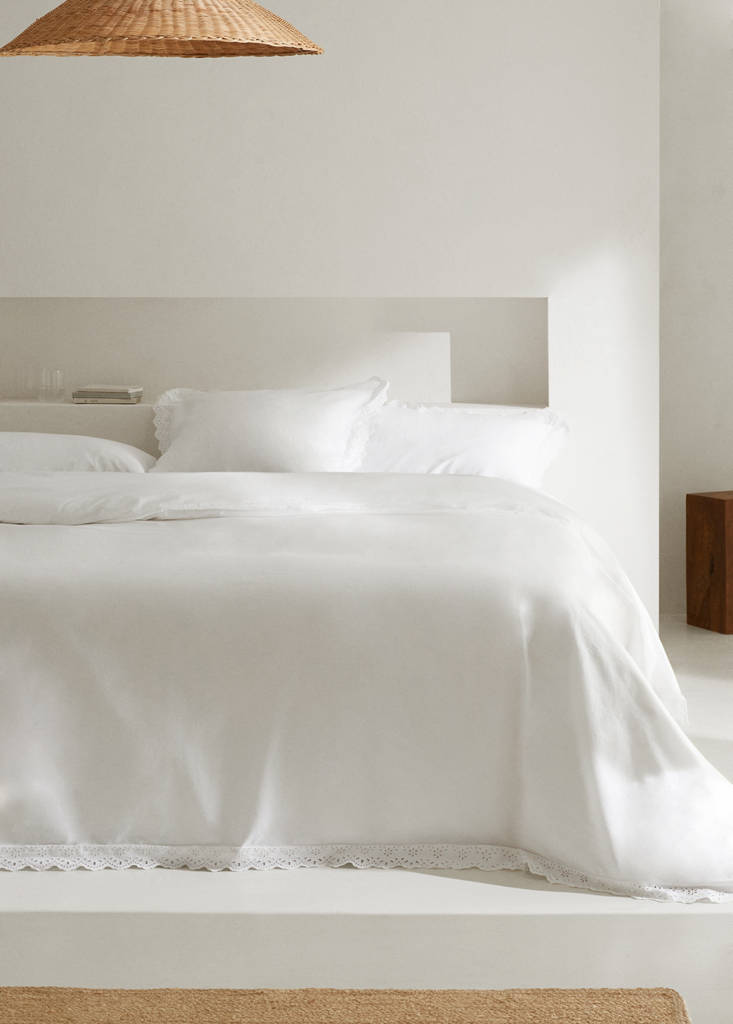 Taille : 220x220 cm. Lit de 135/140cm. 100 % coton. Broderie décorative. Volant brodé. Tissu doux et résistant, idéal pour toutes les saisons. Il associe le confort à la résistance des matériaux aux effets du temps et au lavage. Fermeture à boutons. Ne comprend pas le rembourrage