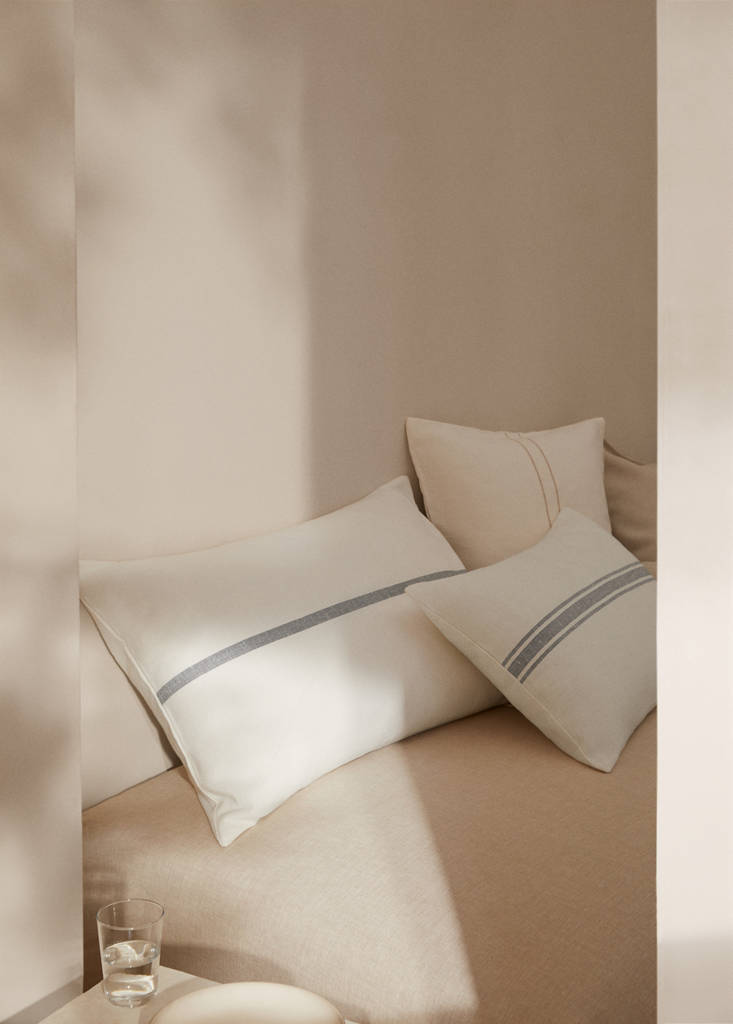 Taille : 50x75cm. Tissu mélange de lin et coton. Détail de rayure imprimée. Fermeture Éclair. Ne comprend pas le rembourrage. Combinez-le avec les taies d'oreiller et les housses de coussin de la même collection pour une chambre en parfaite harmonie