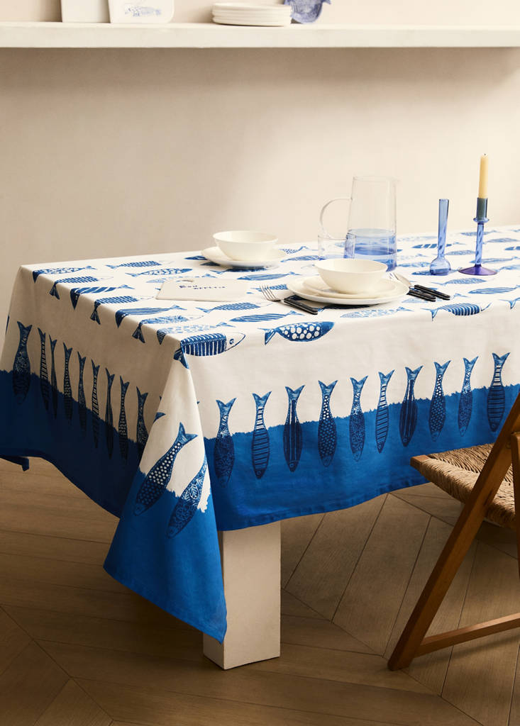 Nappe en coton imprimé poissons pour 6 à 8 convives