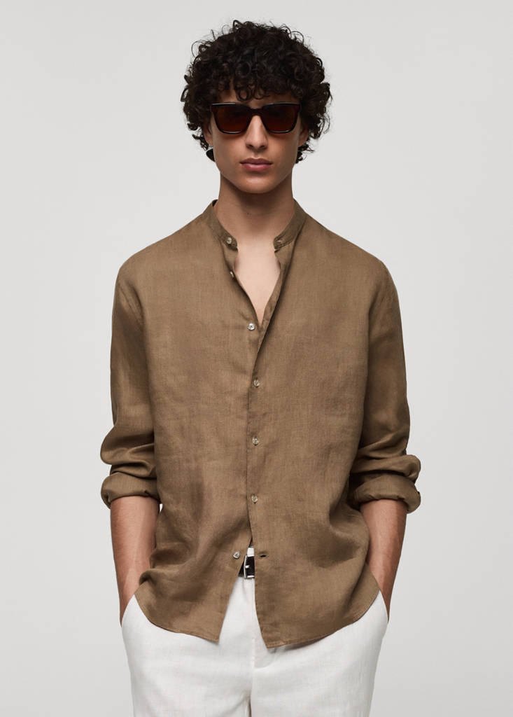 La couleur verte est exclusive en ligne. Tissu 100 % lin. Tissu léger. Col mao. Fermeture à boutons sur le devant. Manches longues et poignets boutonnés. Classic-fit. Ourlet arrondi