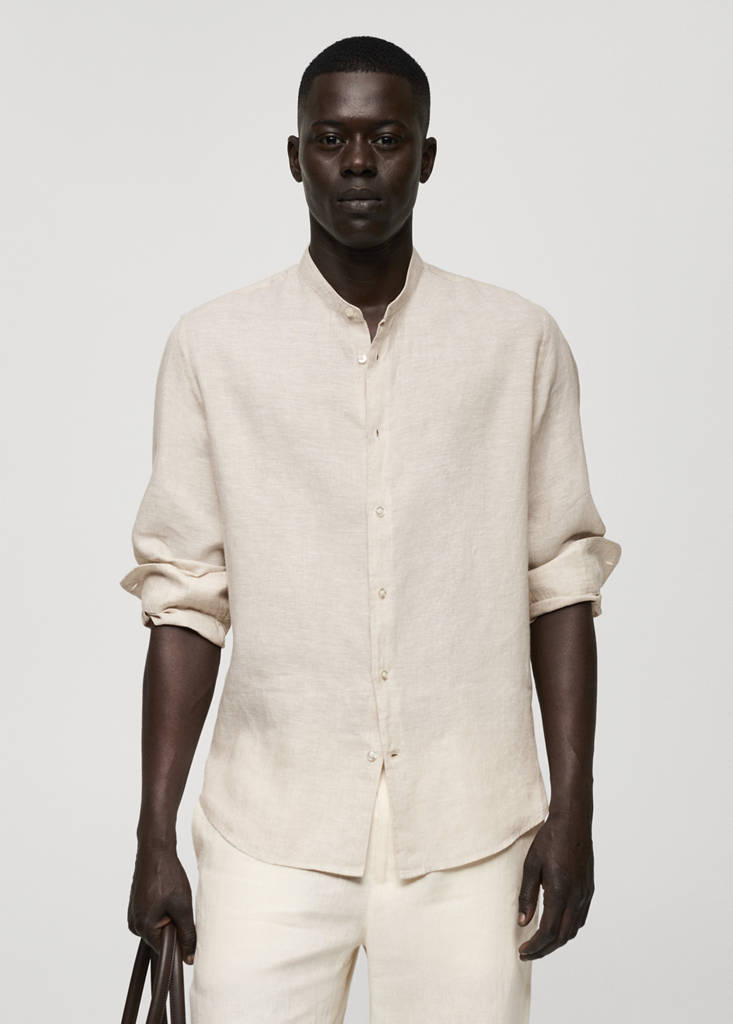 La couleur verte est exclusive en ligne. Tissu 100 % lin. Tissu léger. Col mao. Fermeture à boutons sur le devant. Manches longues et poignets boutonnés. Classic-fit. Ourlet arrondi