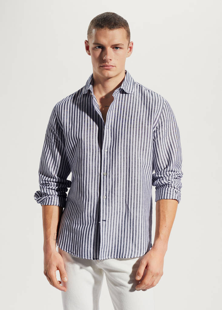 Chemise slim fit lin à rayures