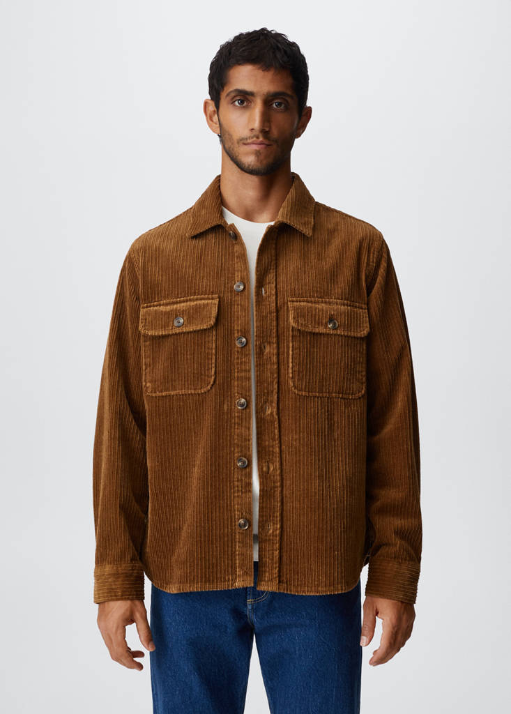 Regular-fit. Tissu de coton mélangé. Tissu en velours côtelé. Col classique. Manches longues avec poignets boutonnés. Deux poches à rabat avec bouton sur la poitrine. Fermeture boutonnée sur le devant