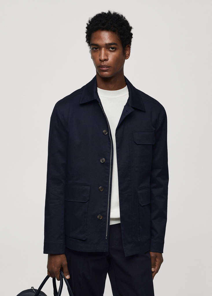 ESSENTIALS: Conçus pour durer. Tissu en coton. Fermeture Éclair et boutons à l’avant. Trois poches avant plaquées avec boutons-pression. Doublure. Bas droit avec surpiqûres. Col classique. Manches longues boutonnées