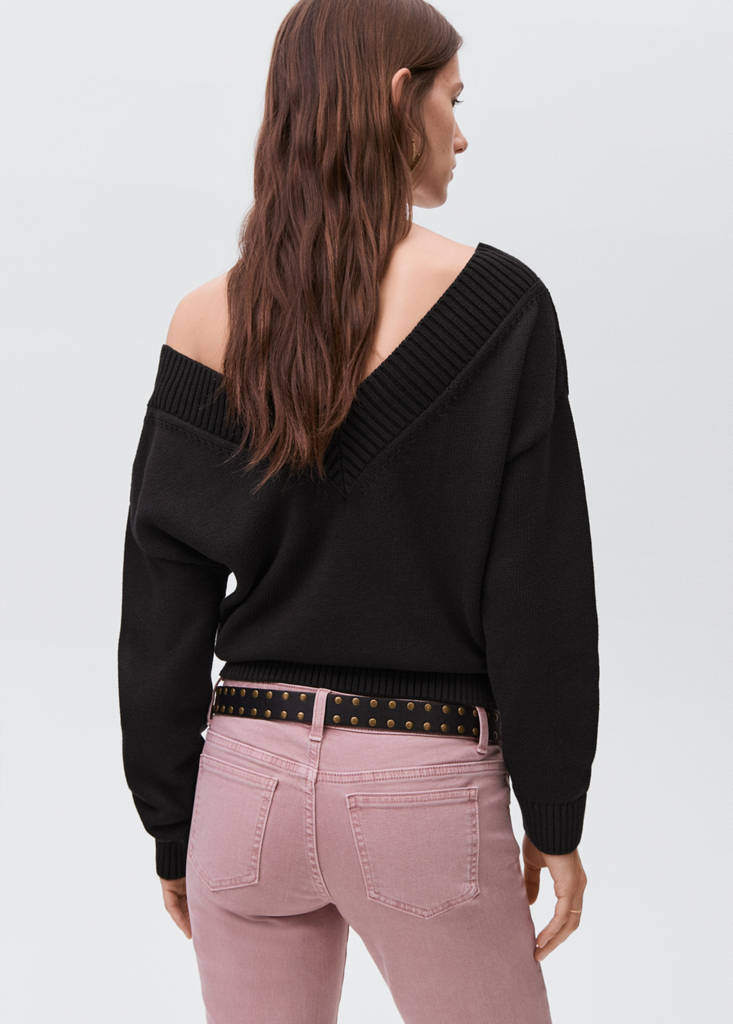 Tissu 100 % coton. Tissu en maille. Coupe oversize. Col en V. Bretelles fines. Ouverture sur l’épaule. Manches longues. Col, poignets et ourlet côtelés