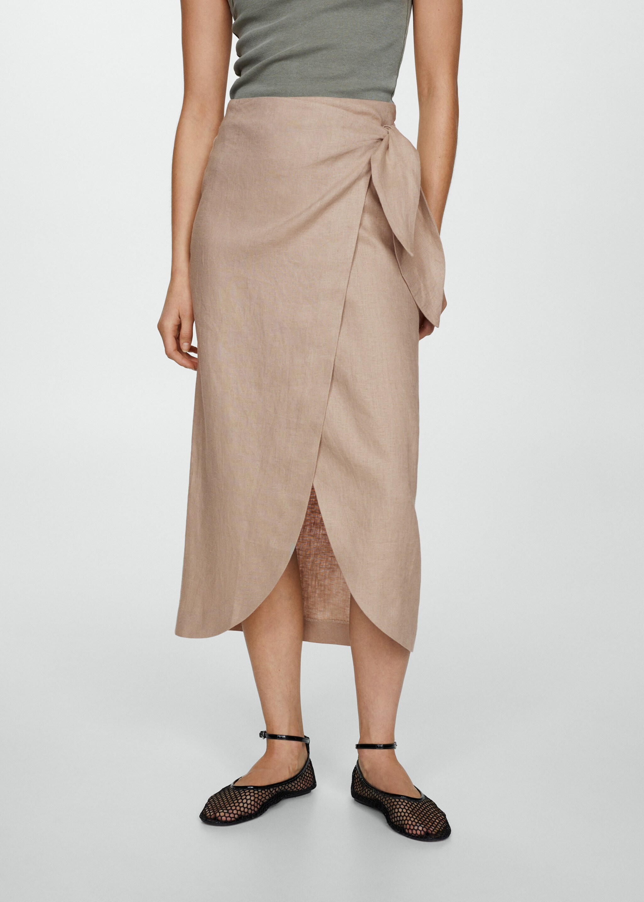 Discover the timeless style of women's midi skirts from Mango Outlet, where elegance and comfort intertwine to create looks that capture the essence of contemporary fashion at prices you love. Our collection offers a range of affordable designs that span from the sophistication of distressed leather midi skirts to the freshness of satin pleated midi skirts, perfect for formal events or a night of celebration without breaking the bank. Midi skirts differ from cheap long skirts and miniskirts by their mid-length that reaches halfway down the calf. Midi skirts are the centerpiece of an outfit that speaks for itself, whether in a work environment where a knit midi skirt or a tailored pencil skirt provides a professional and polished image, or at a Sunday brunch where a cheap polka dot midi skirt adds a touch of fun and femininity. The variety of textures such as lyocell, cotton, and ribbed knit, along with design details like slits, decorative bows, and geometric prints, provide a rich palette of options to personalize your wardrobe. Women's midi skirts not only stand out for their style but also for their functionality and affordability. They are garments that adapt to different silhouettes and lifestyles, offering freedom of movement and a comfortable fit thanks to elastic waistbands and fluid fabrics. Moreover, the versatility of these skirts allows for smooth transitions from the office to dinner, or from day to night, with just a change of accessories and without compromising your budget. At Mango Outlet, we understand that every woman is unique and deserves access to fashion at competitive prices, which is why our collection of cheap skirts includes options for everyone, from designs with bold prints and vibrant colors to more subtle tones and classic cuts on sale. Find the cheap midi skirt that speaks your style language here, don’t miss this opportunity!