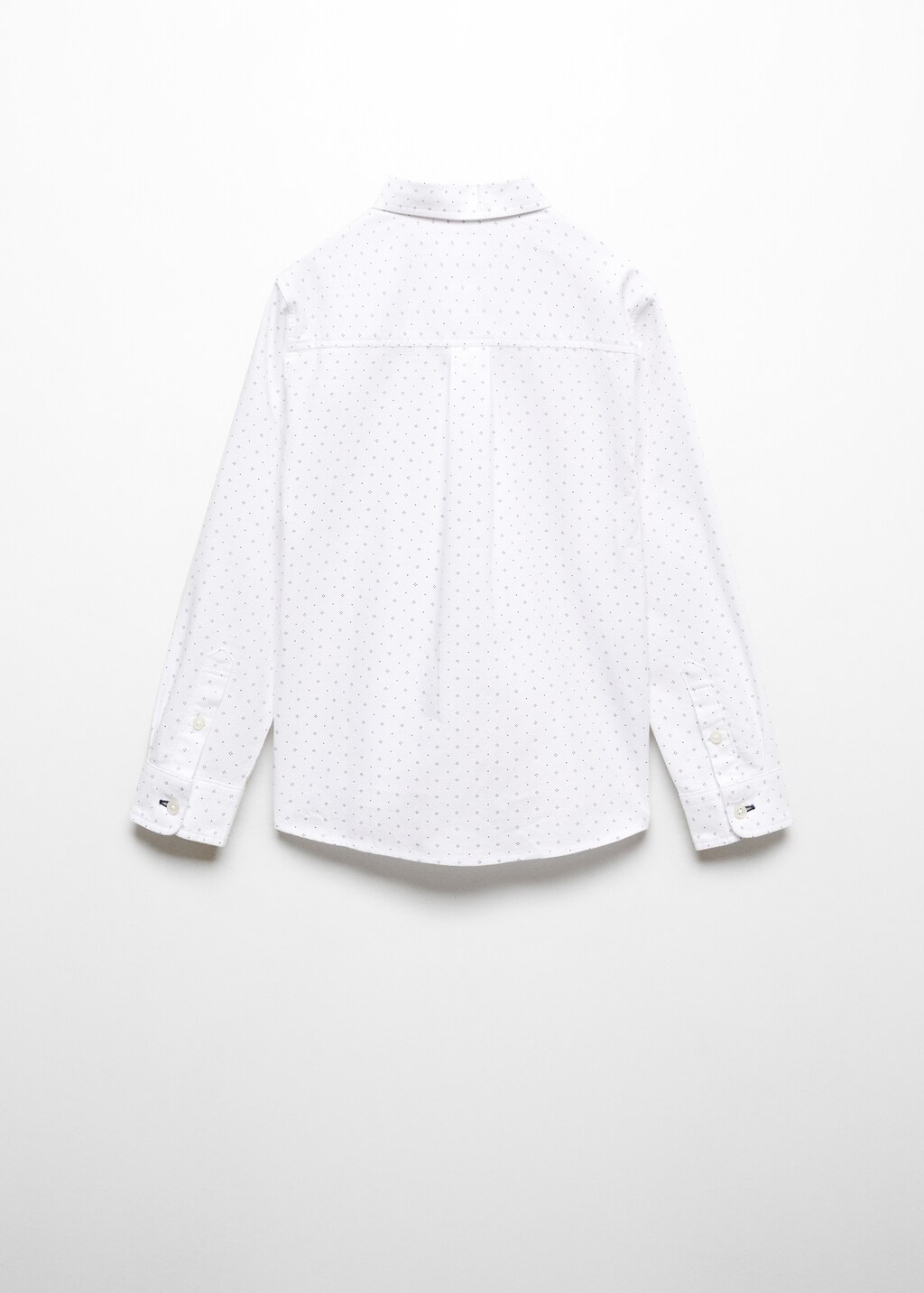 Party, ceremony and communion collection. Oxford cotton. Print. Straight design. Sustainable cotton. Long sleeves with buttoned cuffs. Button fastening at the front. This garment is also available in Baby Boy´s collection. Classic collar