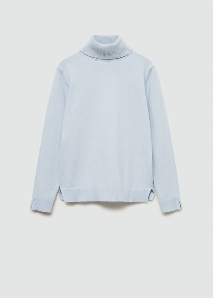 Turtleneck knitted sweaterPrice historyInitial price struck through [€ 19.99 ]€ 19.99Second price struck through [€ 15.49 ]€ 15.49Current price [€ 6.99 ]€ 6.99-65%Select a colourSky BlueSelect your size5-6 years (116cm)Not available. I want it!7-8 years (128cm)Not available. I want it!9-10 years (140cm)Not available. I want it!11-12 years (152cm)Not available. I want it!13-14 years (164cm)Not available. I want it!MeasurementsNotify meBack to school collection. Fabric with cotton. Straight design. Long sleeves. No Fastening. High neckDetails, composition and careStore availabilityItem qualitiesRecycled cottonAt least 20%This fibre is obtained from pre- and post-consumer textile waste that is transformed into new fabrics.