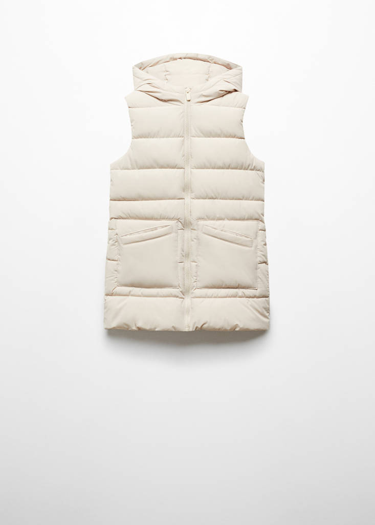 Quilted gilet with hoodPrice historyInitial price struck through [€ 29.99 ]€ 29.99Current price [€ 22.99 ]€ 22.99-23%Select a colourBeigeSelect your size5-6 years (116cm)Not available. I want it!7-8 years (128cm)Not available. I want it!9-10 years (140cm)Not available. I want it!11-12 years (152cm)Not available. I want it!13-14 years (164cm)Not available. I want it!MeasurementsNotify meStraight design. Quilted design. Hood. Sleeveless. Two front pockets. Zip fastening. Front closure. Internal label for personal dataDetails, composition and careStore availability
