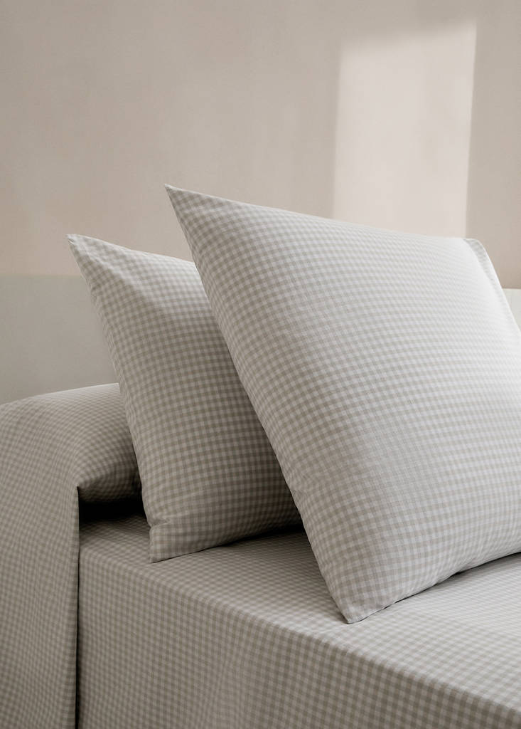 Size: 60x60cm. Pack of 2. 100% Cotton. Percale cotton fabric, highly breathable, soft and supple. 200 cotton threads offer maximum softness, resistance and breathability, providing a lightweight soft touch feeling . Gingham check print. Flap closure. Filling not included