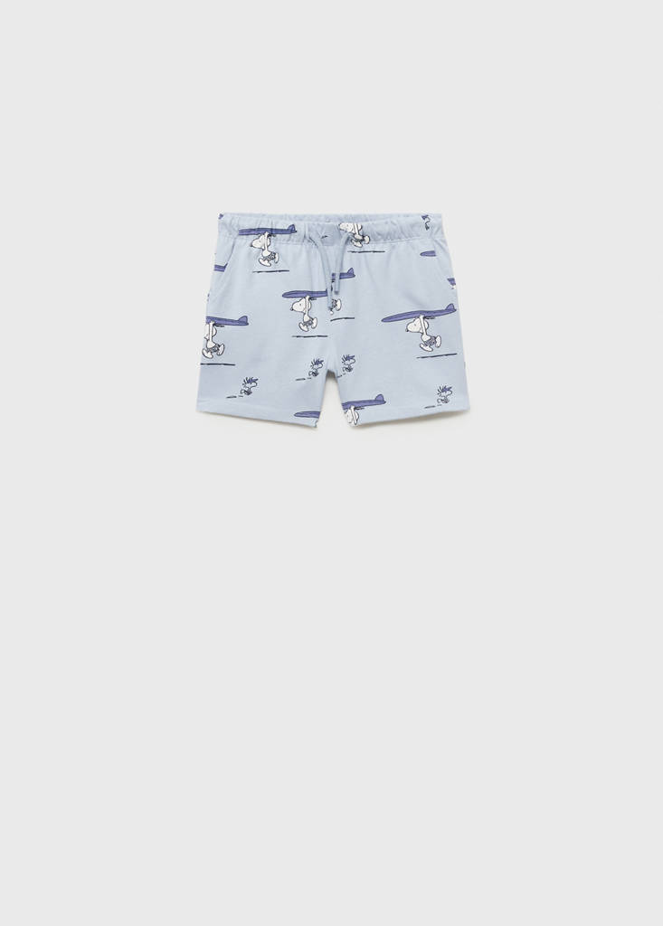 100% Cotton. Snoopy design. Straight design. Short design. Two front pockets. Elasticated waistband. Drawstring on the waist. Kids license. Total look