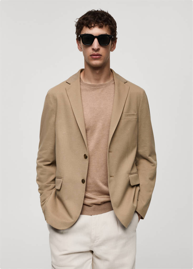 Slim fit. Structured fabric. Fine fabric. Notched lapel. Two-button fastening at the front. Long sleeves with buttoned cuffs. Chest welt pocket. Two front flap pockets. Inner lining at the front. Two welt pockets inside. Interior pocket with button closure. Double back vent at the hem. The colour black is exclusively online. Cotton fabric. Cotton twill structure. Notched lapel collar. Double back slit. Inner lining. Straight hem. Tailoring collection. Front closure with buttons