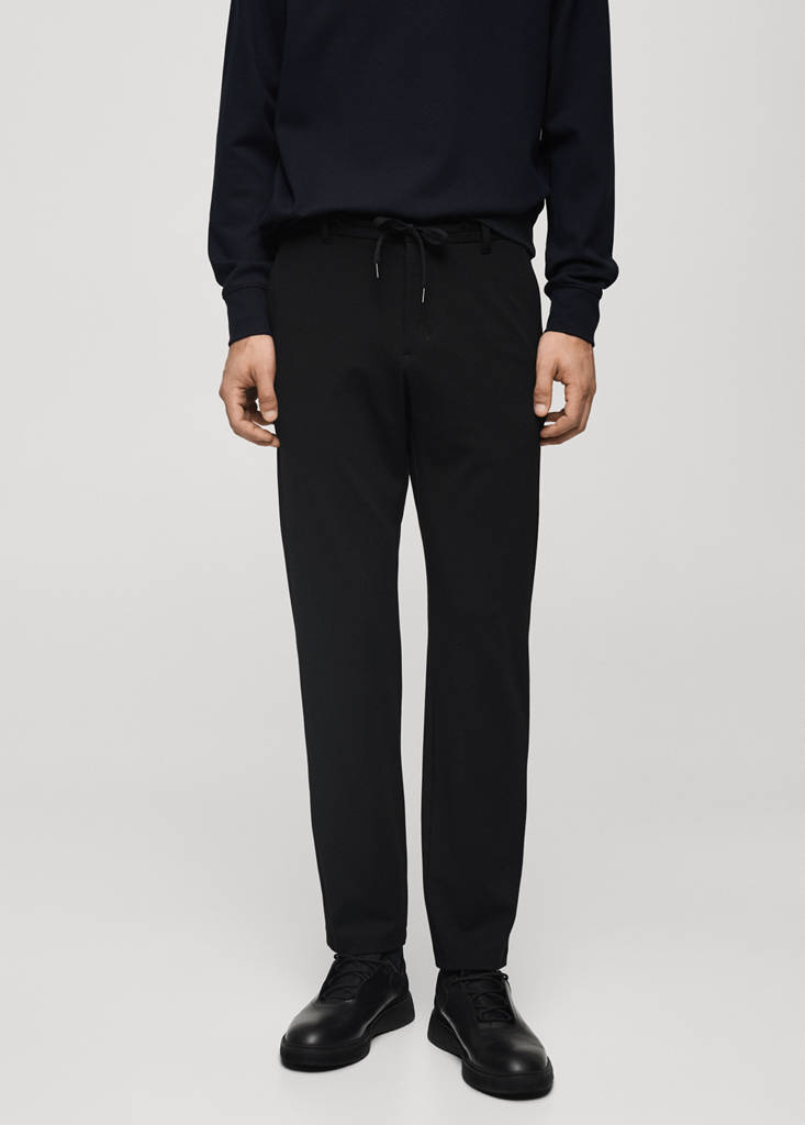 Stretch fabric slim-fit trousers with drawstring