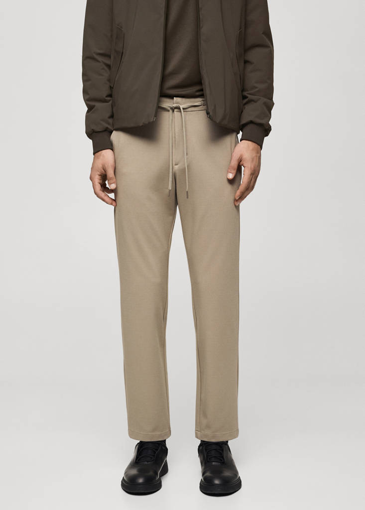 Stretch fabric slim-fit trousers with drawstring