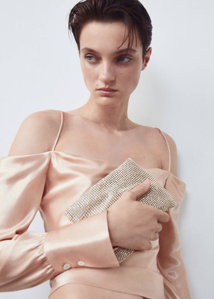 Strass design. Small size. Long detachable chain strap. Magnetic metallic fastening. Inner lining. Party, ceremony and communion collection
