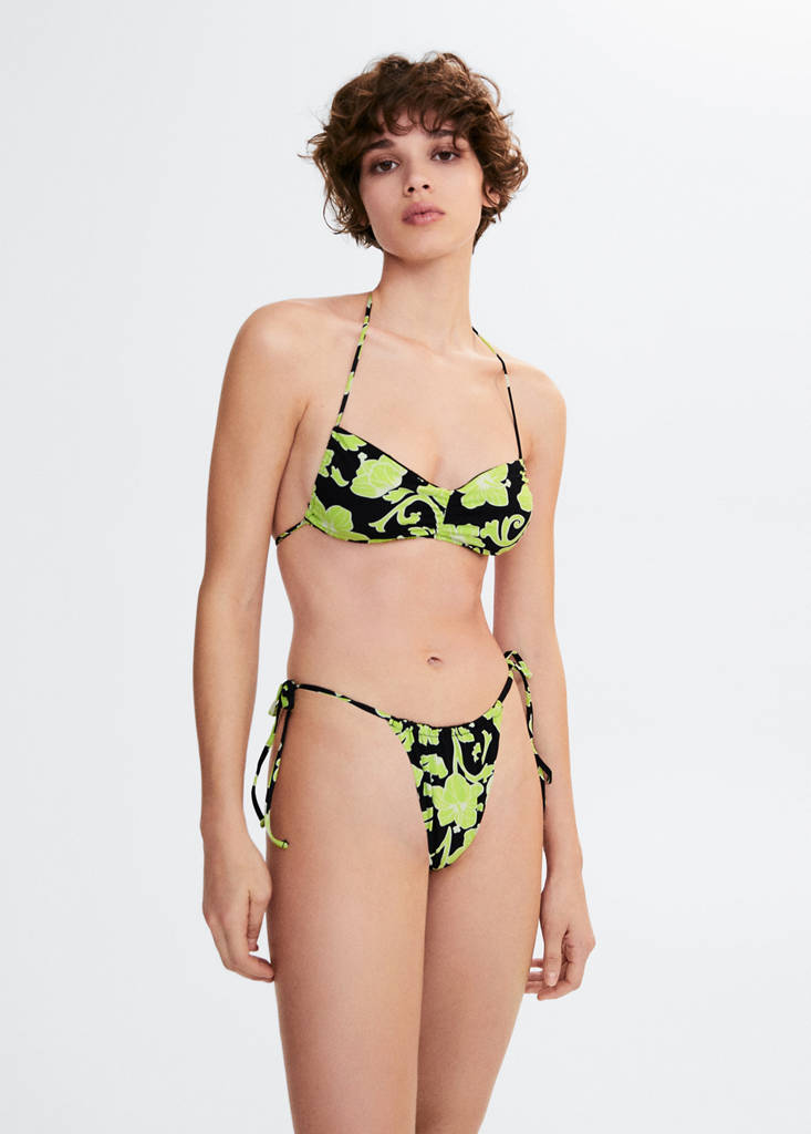 Floral print. Brazilian style. Side bow fastenings. Inner lining. Total look available. Swimwear collection