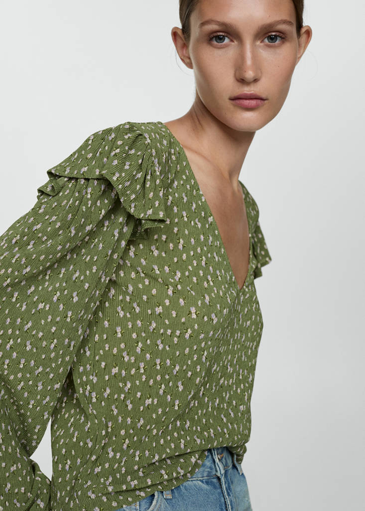 Ruffles printed blousePrice historyInitial price struck through [€ 25.99 ]€ 25.99Second price struck through [€ 17.99 ]€ 17.99Current price [€ 8.99 ]€ 8.99-65%Select a colourGreenSelect your sizeXXSNot available. I want it!XSSNot available. I want it!MNot available. I want it!LNot available. I want it!XLNot available. I want it!XXLNot available. I want it!1XLNot available. I want it!2XLNot available. I want it!3XLNot available. I want it!4XLNot available. I want it!DimensionsAddFluid fabric. Straight design. V-neckline. Long sleeves with elastic cuffs. Shoulder ruffle detail. Available Plus. Printed designDetails, composition and careStore availability