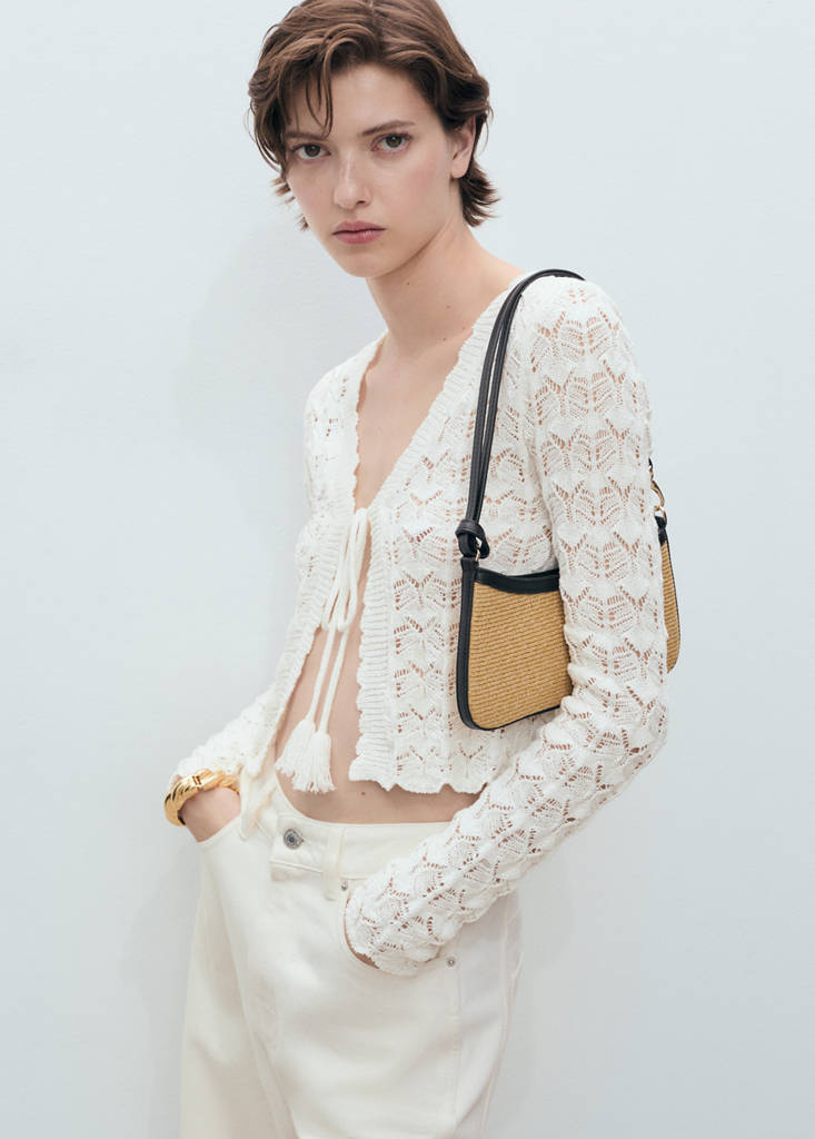 Crochet cardigan with bow closure