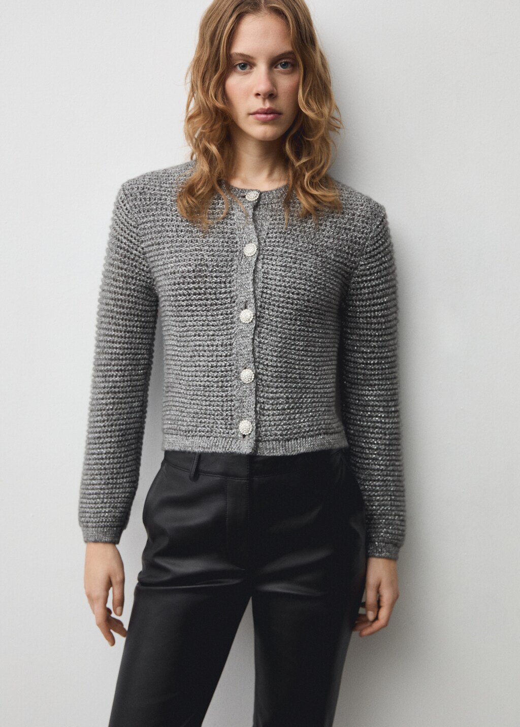 No Fastening. Knit fabric. Lurex fabric. Straight Design. Round neck. Long sleeve. Button fastening at the front. Party and Ceremony Collection. Standard design. Midpoint. V-neck.