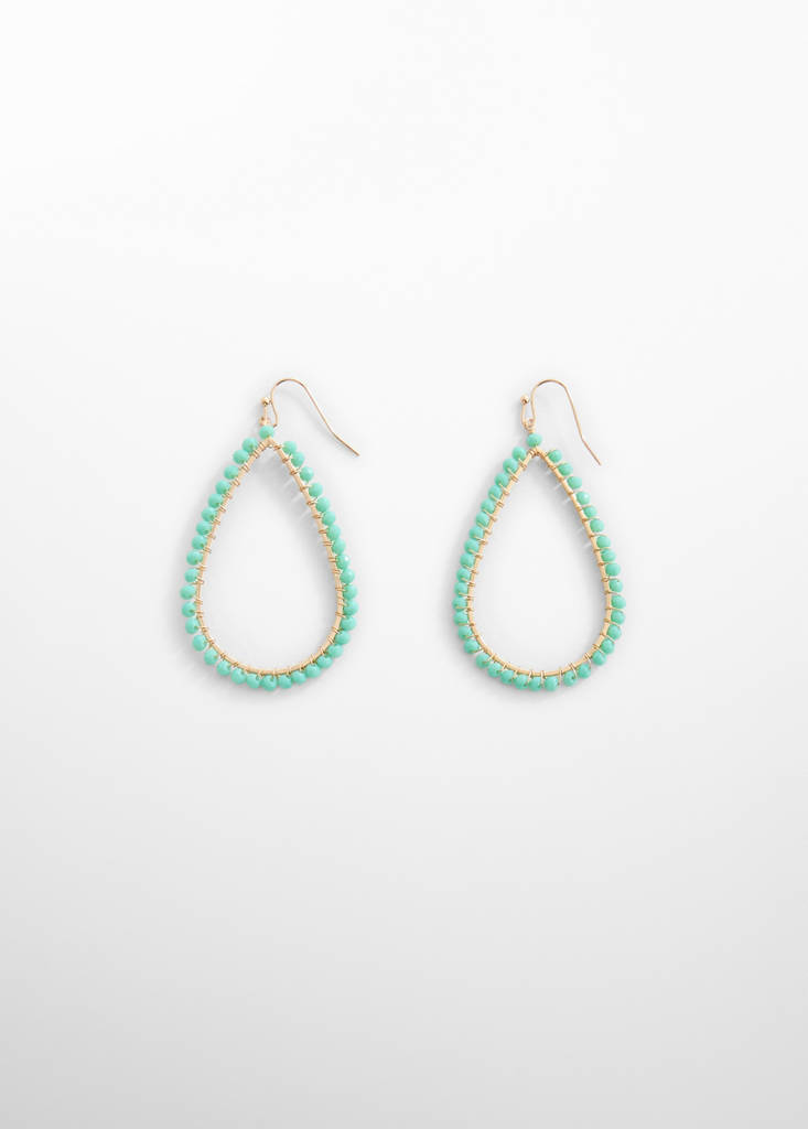 Long design. Oval design. Combined beads. Metal snap closure. The diameter of the ring is 5.5 cm