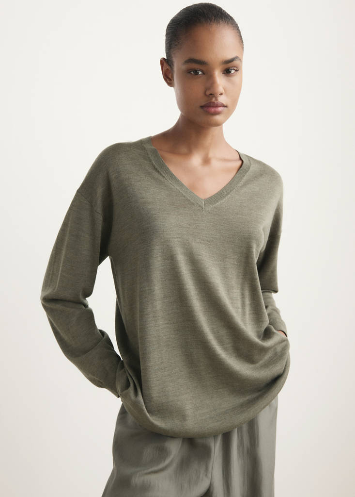 100% WoolV-neck wool sweaterPrice historyInitial price struck through [€ 69.99 ]€ 69.99Second price struck through [€ 48.99 ]€ 48.99Current price [€ 42.99 ]€ 42.99-39%Select a colourGreenSelect your sizeSLast few items!MNot available. I want it!LNot available. I want it!MeasurementsAdd100% wool. V-neck. Plain colors. Available in different coloursDetails, composition and careStore availabilityItem qualitiesWool100%A natural fibre that creates durable garments and stands out for its capacity to regulate the body temperature.
