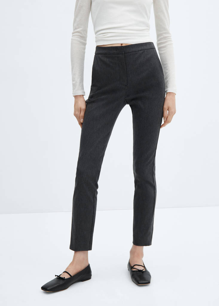Crop design. Skinny fit. Mid-rise. Belt loops. Two side pockets. Two welt pockets at the back. Zip and button fastening. Inner lining. Available Plus. Office looks. Cotton blend fabric. Stretch fabric. Concealed button, hook and zip fastening. Skinny trousers with high elasticity and comfort. Sustainable. Fluid fabric. Side pockets. Long design. Two side welt pockets. Suit style. Button, hook and zip front closure