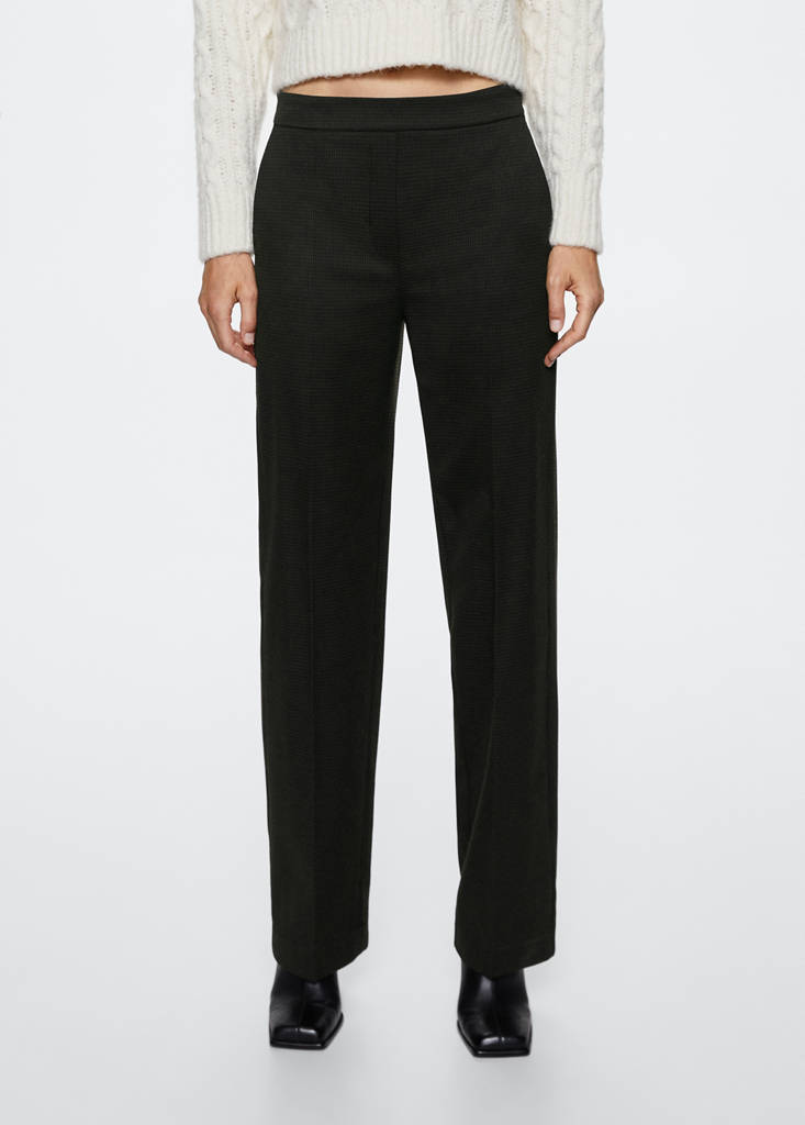 Flowy fabric. Elastic. Checked print. Straight design. Long design. Invisible lateral zip fastening. Two side pockets. Inner lining