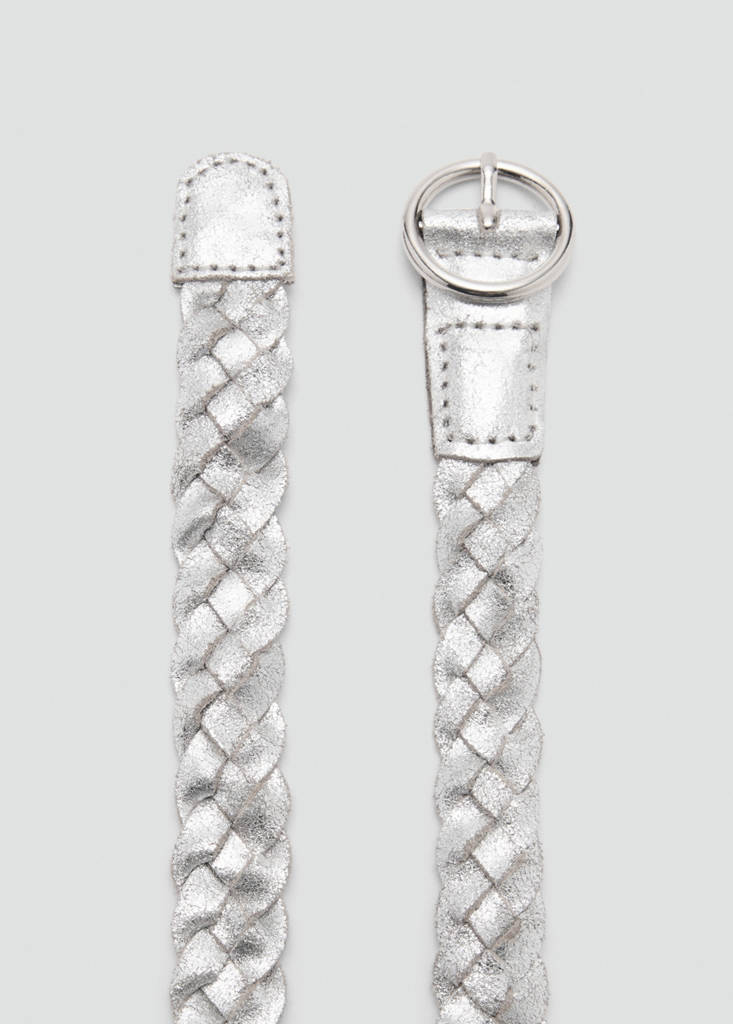 100% kůže. Metalizovaného vzhledu. Zapletený vzor. Zapínání na přezku. Kulatá přezka