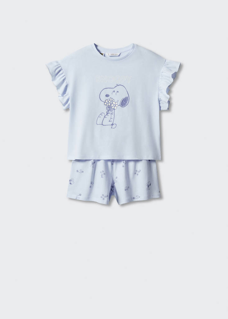 100% cotton. Obrázek s potiskem na předním díle. Rovný střih. Kraťasy. Tričko s krátkým rukávem s volánem. Kulatý výstřih. Krátký rukáv