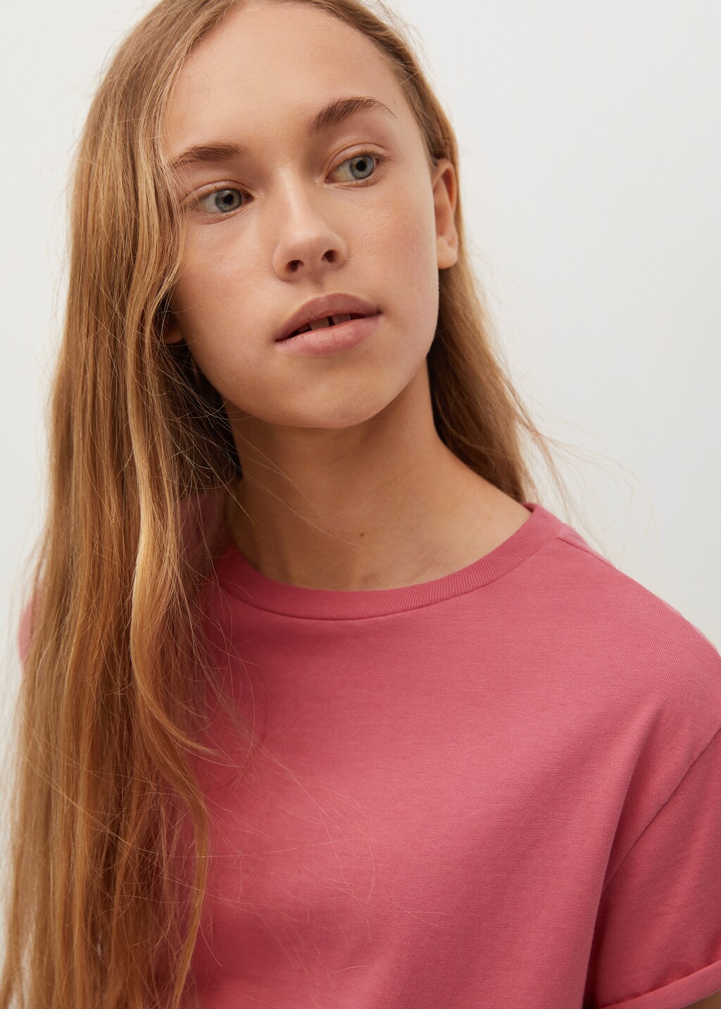 Krátký rukáv. Tkanina z organické bavlny. Úplet. Kulatý výstřih. Spadlý ramenní šev. Krátký rukáv s ohrnutím. Modelka měří 164 cm a má na sobě velikost S. Vrácení tohoto zboží lze provést pouze poštou.
