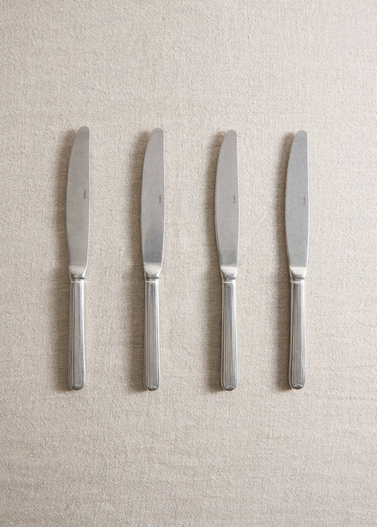 Příbor. 100% nerezová ocel. Stříbro se zestárlým efektem. Kuchyňské náčiní. Sada 4 kusů. Příbor