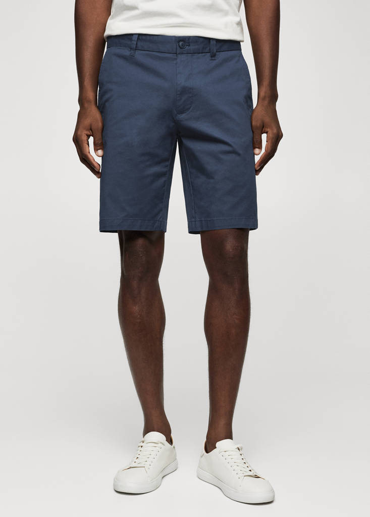 Látka z udržitelné bavlny. Strečová tkanina. Poutka. Dvě boční kapsy. Kapsička na mince. Dvě lemované kapsy vzadu. Zapínání na zip a knoflík. Model/ka měří 187 cm a má na sobě velikost 42. Kolekce basics
