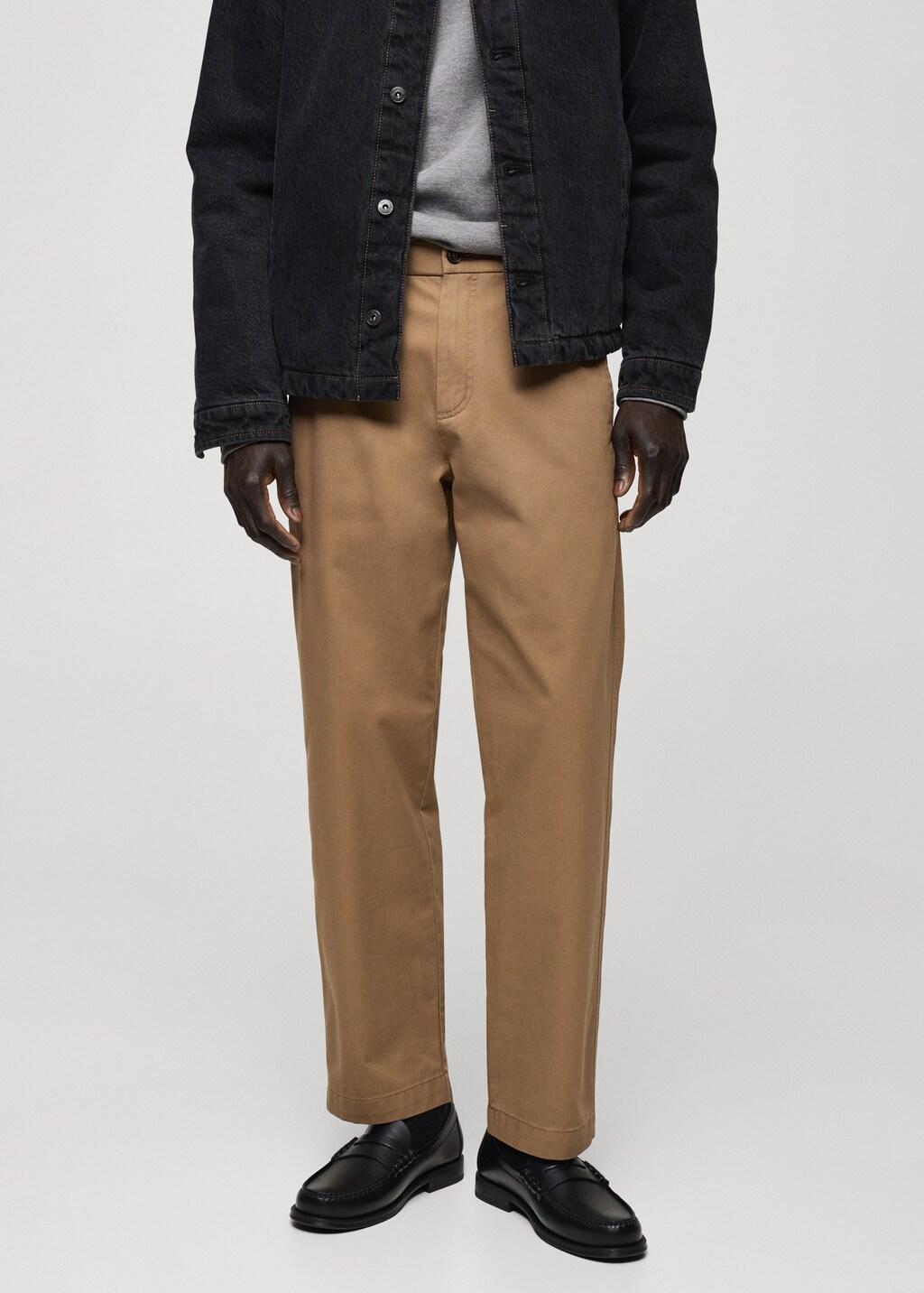 100% bavlna. Regular fit. Elastický pas s nastavitelnou šňůrkou. Zapínání na zip a knoflík. Poutka na pásek. Dvě boční kapsy. Dvě zadní kapsy s lemem. Bavlněná tkanina.