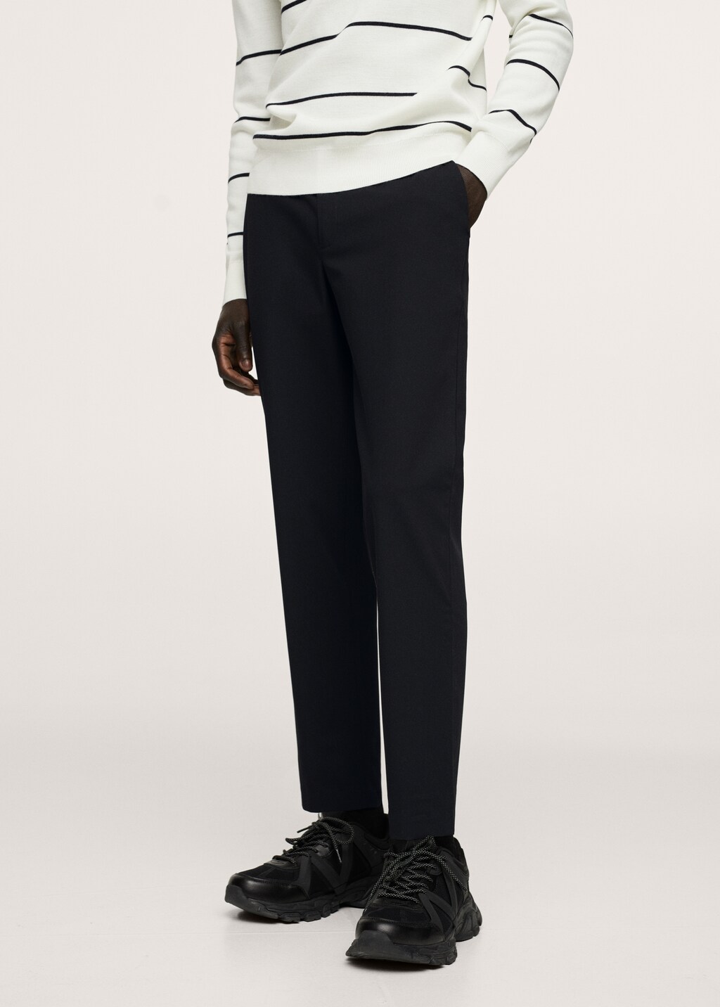 Exkluzivně online. Tapered fit: široký střih v horní části, který se zužuje od kolene ke kotníku.. Střih crop. Strečová tkanina. Wrinkle free: nemačkavá látka. Poutka. Pas se stahovací šňůrkou. Dvě boční kapsy. Dvě lemované kapsy vzadu. Zapínání na zip a knoflík.