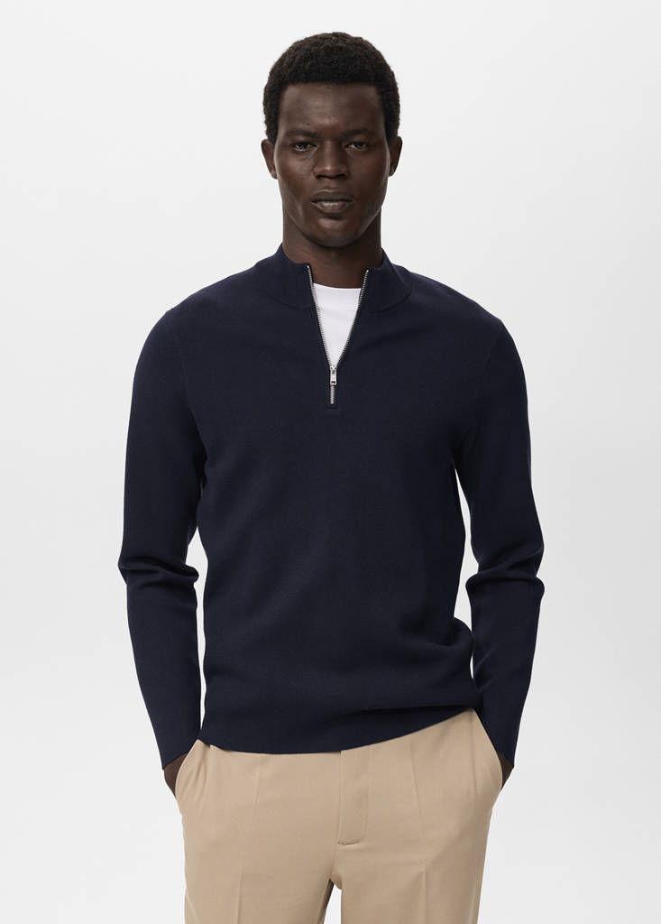 Jemný úplet. Regular fit. Vysoký límec se zapínáním na zip. Lemování u krku, rukávů a spodního okraje v žebrovaném úpletu