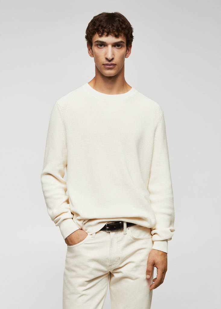 ESSENTIALS: Vyrobeno, aby vydrželo. Jemný úplet. Kulatý výstřih. Dlouhé rukávy. Žebrování u krku, na rukávech a na spodním lemu