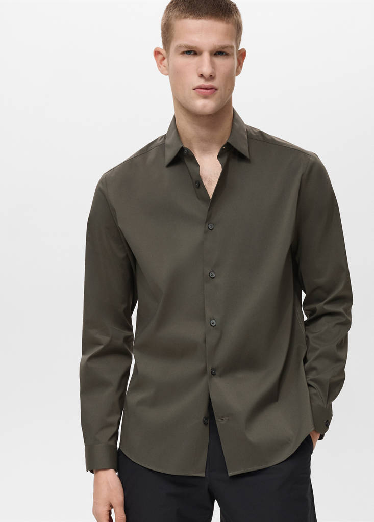 Kolekce Performance. Wrinkle free: nemačkavá látka. Termoregulace: Tato látka poskytuje optimální prodyšnost, která zajišťuje stabilní teplotu. Comfort Strech – strečová látka pro větší pohodlí. Non iron: Oděv, který nevyžaduje žehlení, vyrobený z nemačkavé tkaniny.. Breathable: Tato látka pomáhá regulovat tělesnou teplotu tím, že umožňuje uvolňování vlhkosti. Regular fit. Klasický límec. Přední zapínání na knoflíky. Dlouhý rukáv s knoflíkovými manžetami. Zaoblený lem