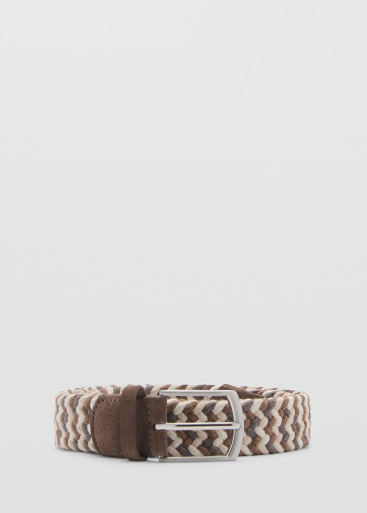 Kovová přezka. Kožená obruba. Kombinované barvy. Pruženka poskytující upevnění a pohodlí