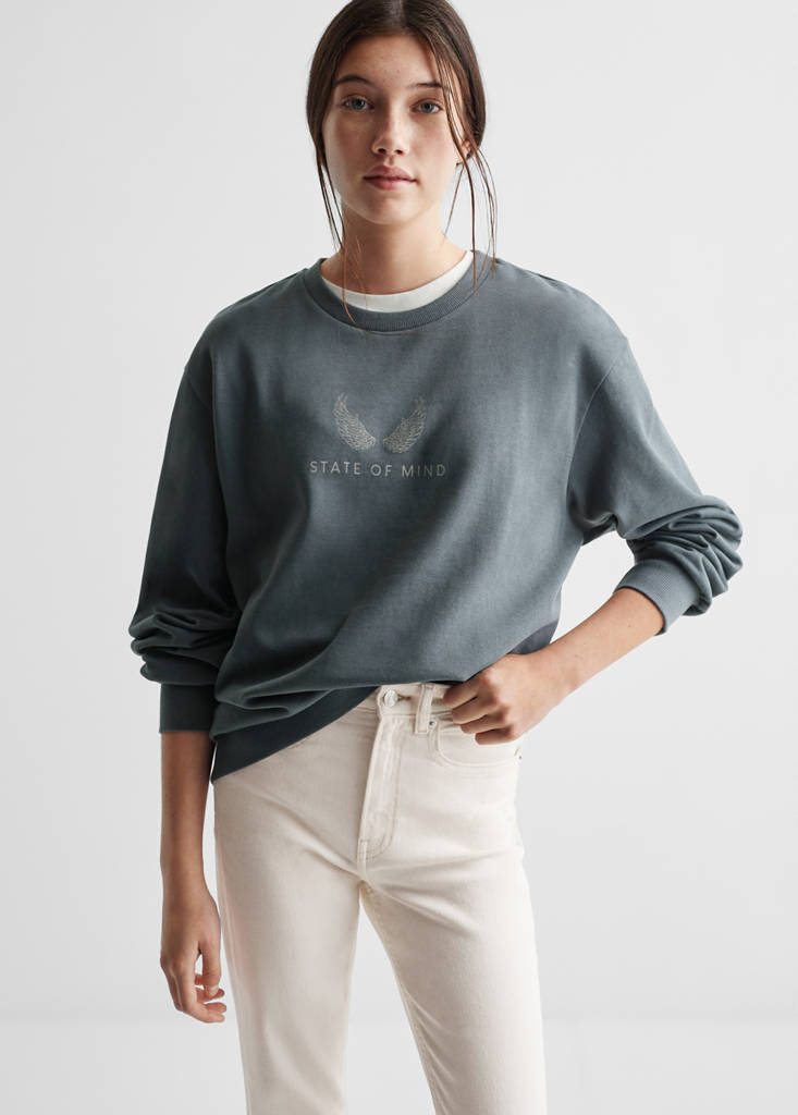 Bavlněná látka džínového stylu. Dlouhý střih. Stylu flare do zvonu. Vysoký sed. Pět kapes. Roztřepený spodní lem. Zapínání na zip a knoflík. Modelka měří 172 cm a má na sobě velikost M