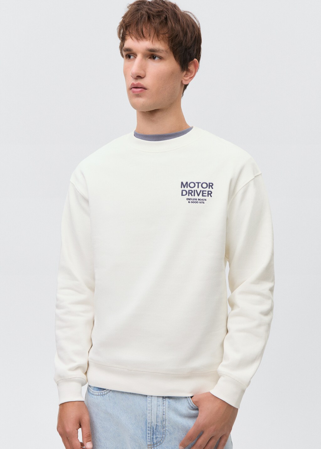 100% Bavlna. Rovný střih. Dlouhý rukáv. Kulatý výstřih. Potisk s nápisem. Manžety a spodní lem s žebrováním.