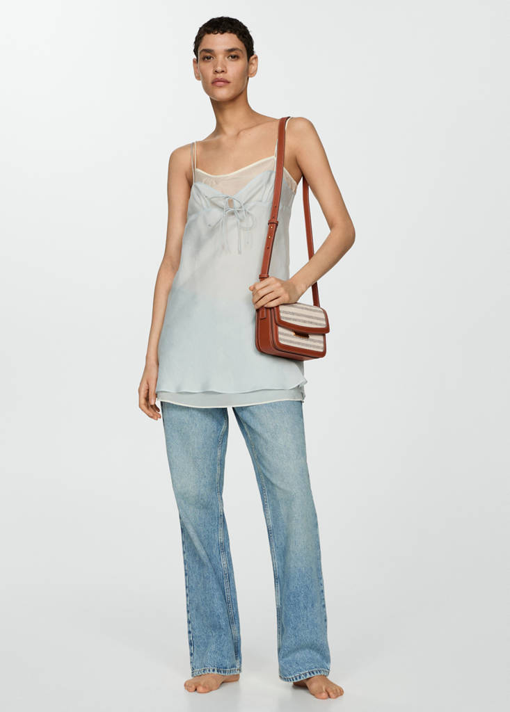 Malá velikost. Směsová bavlněná tkanina. Nastavitelný dlouhý popruh. Dva oddíly. Kovové zapínání na druk. Kontrastní zakončení. Podšívka. Design proužků