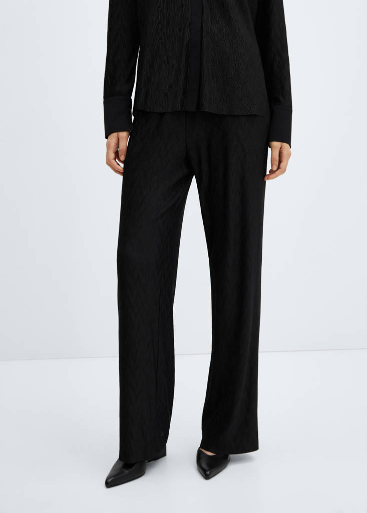 Tekutá tkanina. Tkanina s texturou. Plisovaná tkanina. Wideleg střih. Pas s elastickou gumou. Bez zapínání. Total look. Dostupné Plus