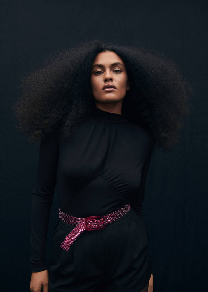 Síťovinová tkanina. Zapínání na hranatou kovovou přezku. Slavnostní kolekce