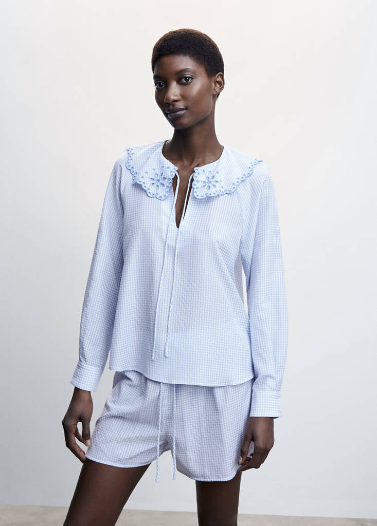 Krátké pyžamo se strukturouHistorie cenPůvodní cena přeškrtnutá [1 599 Kč ]1 599 KčAktuální cena [1 099 Kč ]1 099 Kč-31 %Vyberte barvuModrá oblohaModelka má na sobě velikost S a měří 175cm.Zvolte svou velikostSNení k dispozici. Chci to!MNení k dispozici. Chci to!LNení k dispozici. Chci to!RozměryProsím o upozorněníSouprava pyžamového trička a kalhot. Tkanina se vzorem. Rovný střih. Krátký střih. Výstřih s límečkem. Dlouhý rukáv s knoflíčky. Zavazování na stuhuPodrobnosti, složení a péčeDostupnost v obchodě
