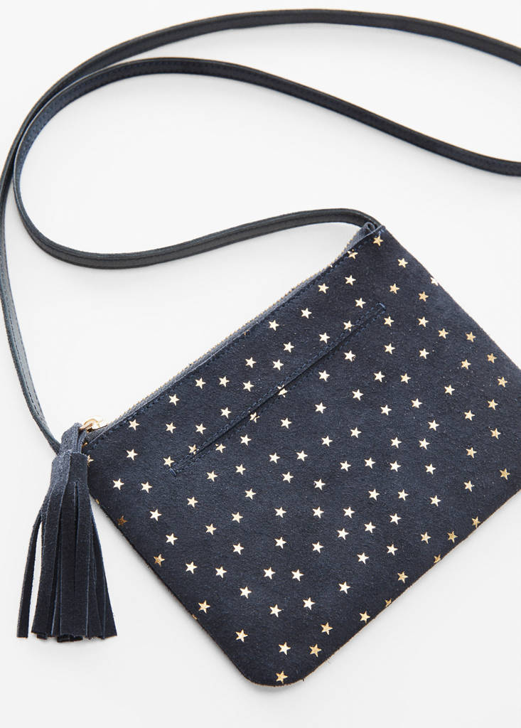 Party, ceremony and communion collection. 100% bovine leather. Star print. Medium. Long strap. Pocket with flap. Zip fastening