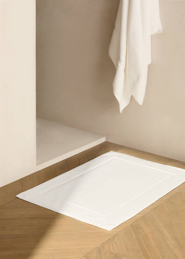 Bath mat. 100% Cotton. Grammage: 850 g/m2. Size: 60x90cm. Its modern design enhances any bathroom, combining softness and excellent absorption. Coordinates with more products from the collection. Available in different colours