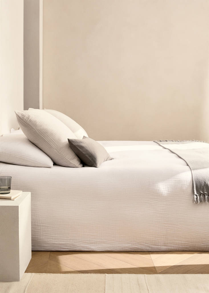 Bed 180/200cm. Size: 260x240cm. 100% Cotton. Three-layer muslin. Soft texture. Gauze fabric. Creased and natural finishing. Relaxed design. Quick-dry fabric. Adds a cosy and warm touch. Coordinates with more items from the collection. Mediterranean style. Match it with the pillowcases and cushion covers of the same collection to have a bedroom in perfect harmony. Button up. Filling not included. Available in different colours. 180/200cm Bed. This product does not include pillowcases