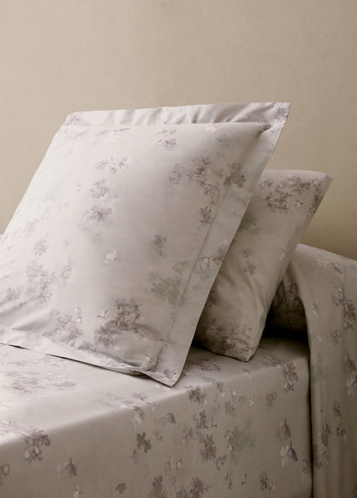 Two cotton percale romantic floral-print pillowcases 60x60 cm