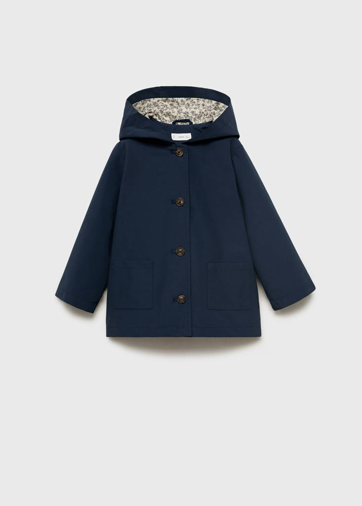 Cotton blend fabric. Straight design. Hood. Long sleeves. Two front pockets. Front closure with buttons. With inner lining. Label for personal data